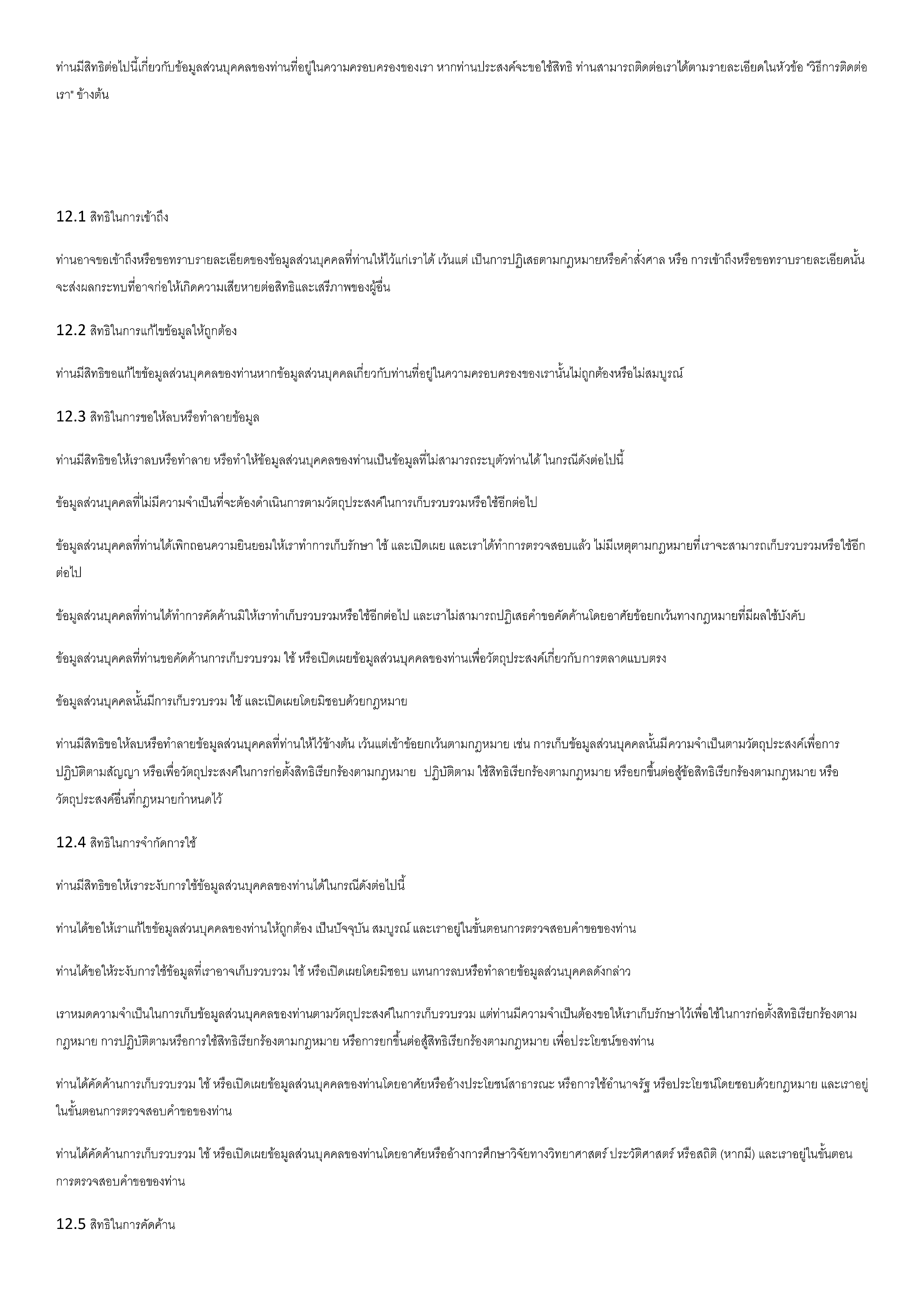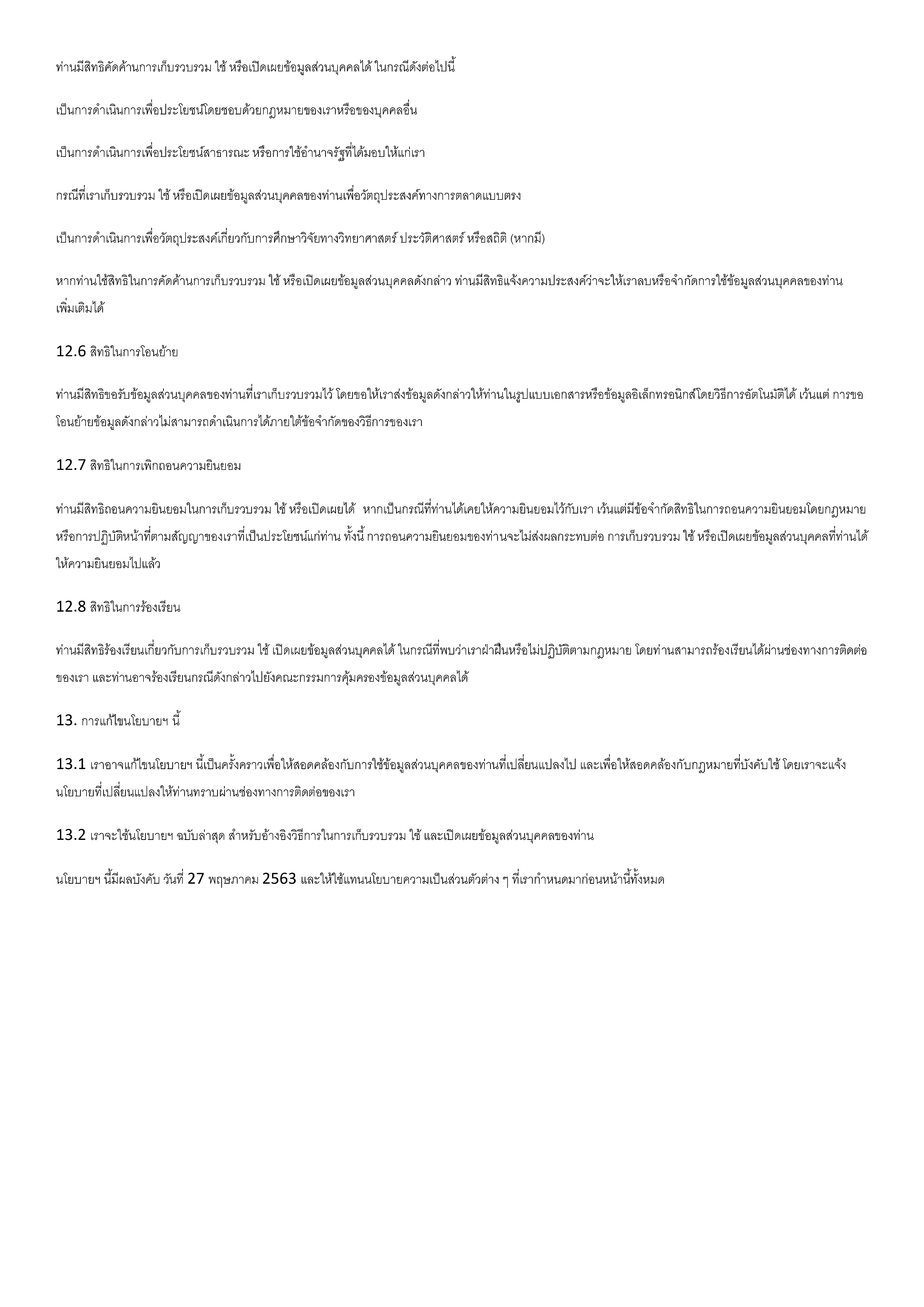 (8)สิทธิในการร้องเรียน ท่านมีสิทธิยื่นข้อร้องเรียนเกี่ยวกับบริษัทฯ ให้แก่หน่วยงานรัฐที่เกี่ยวข้องหากบริษัทฯ ละเมิดหรือไม่ปฏิบัติตามกฎหมายว่าด้วยการคุ้มครองข้อมูลส่วนบุคคลที่บังคับใช้ในประเทศไทย รวมถึงนโยบายและข้อบังคับอื่นๆ
