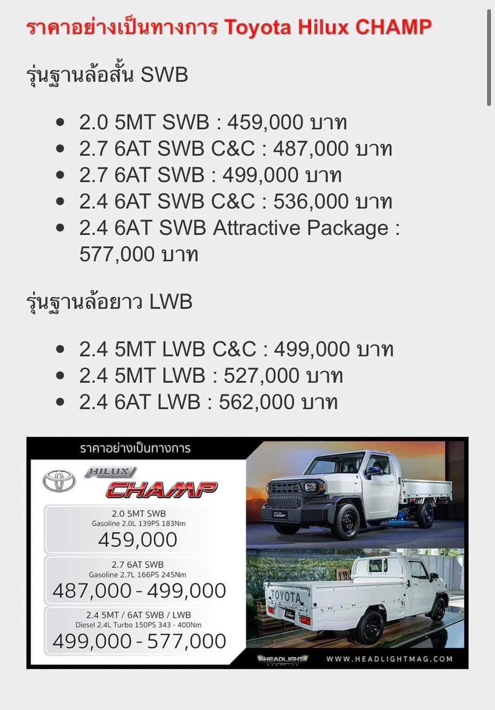 2.4 5MT LWB C&C : 499,000 บาท