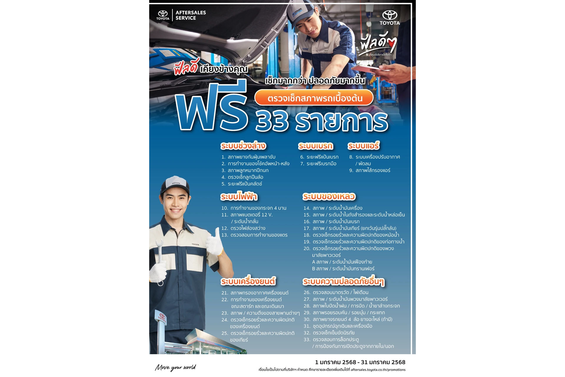 ตรวจเช็กสภาพรถเบื้องต้น 7 ระบบสำคัญ จำนวน 33 รายการ สำหรับรถยนต์โตโยต้าทุกรุ่น