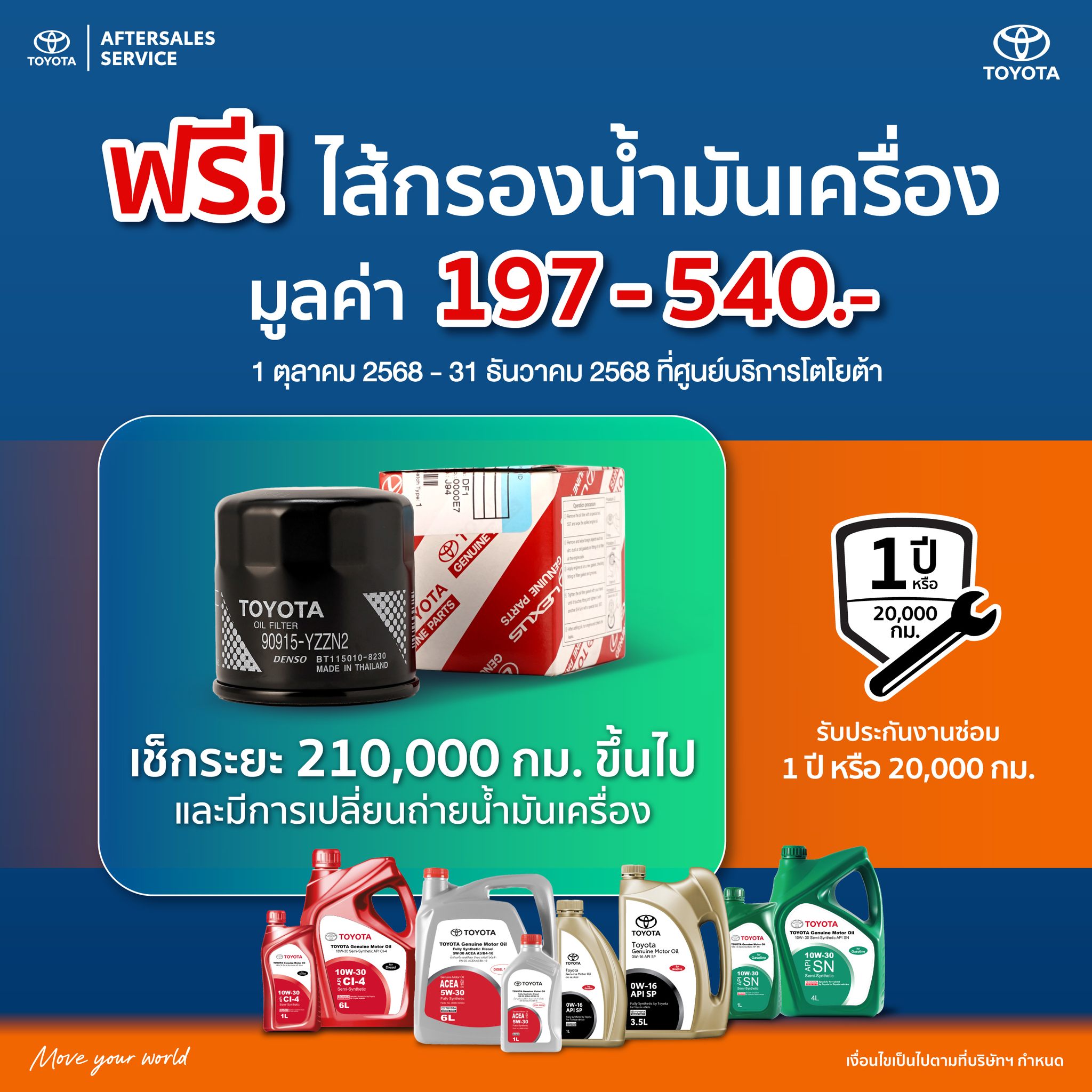 เช็กระยะ 210,000 กม. ขึ้นไป ฟรี! ไส้กรองน้ำมันเครื่อง*