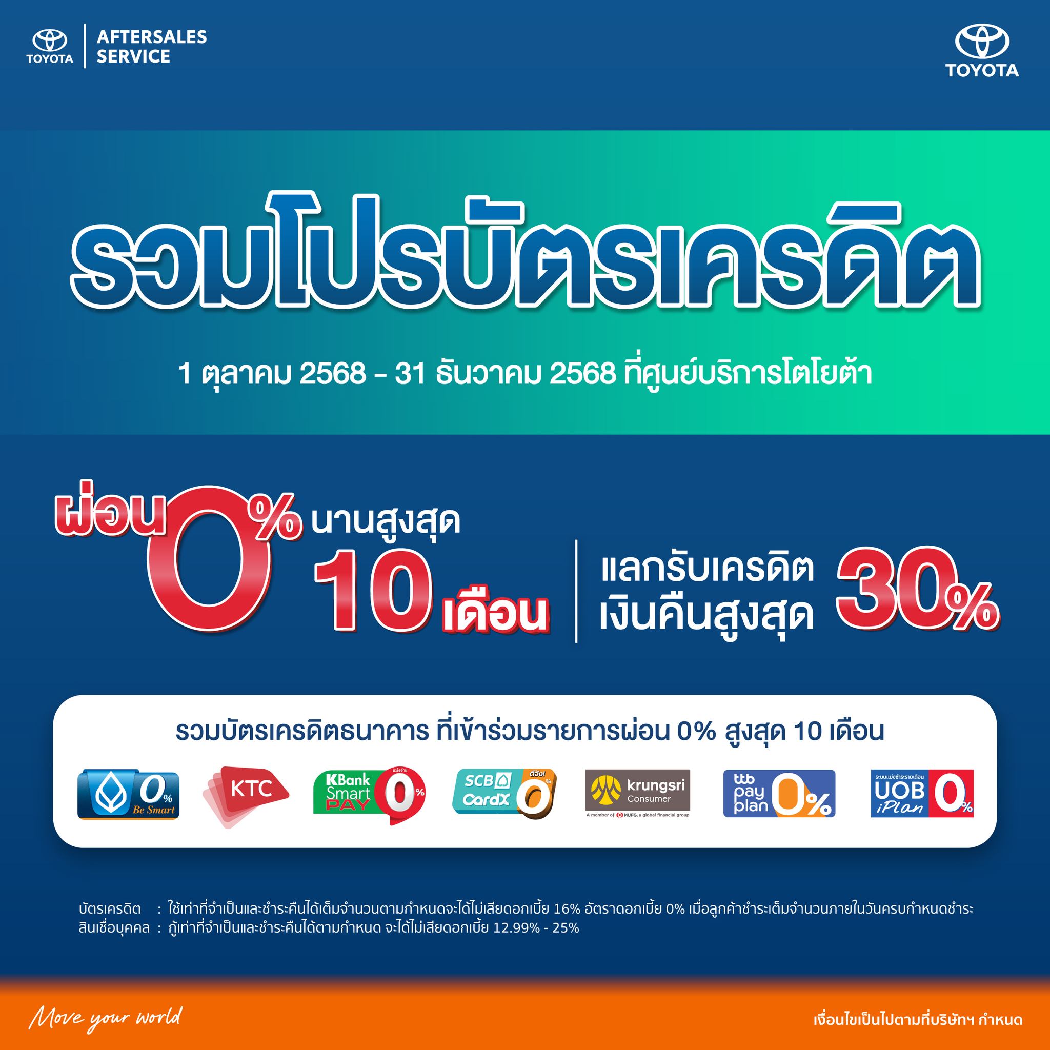 โปรบัตรเครดิตผ่อน 0% สูงสุด 10 เดือน* หรือแลกรับเครดิตเงินคืนสูงสุด 30%*