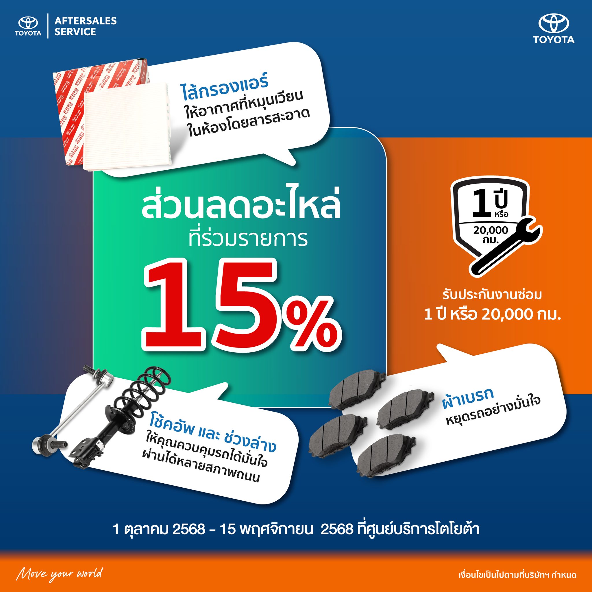 ไส้กรองเครื่องปรับอากาศ, โช้ค, เบรก และอื่นๆ ลด 15%